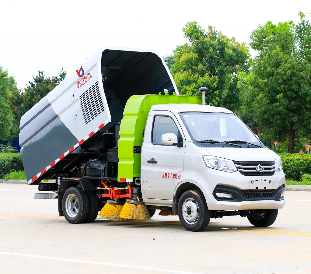 cleaning and sweeping vehicle is an efficient sanitation vehicle that integrates the functions of a road sweeping vehicle and a high-pressure cleaning vehicle. The vehicle adopts Dongfeng Tianjin second-class chassis and is equipped with a secondary engine and its transmission device, garbage bin, clean water tank, cleaning device, dust reduction system, suction nozzle, low-pressure flushing system, high-pressure cleaning system, hydraulic system, pneumatic system, electrical system and other components.