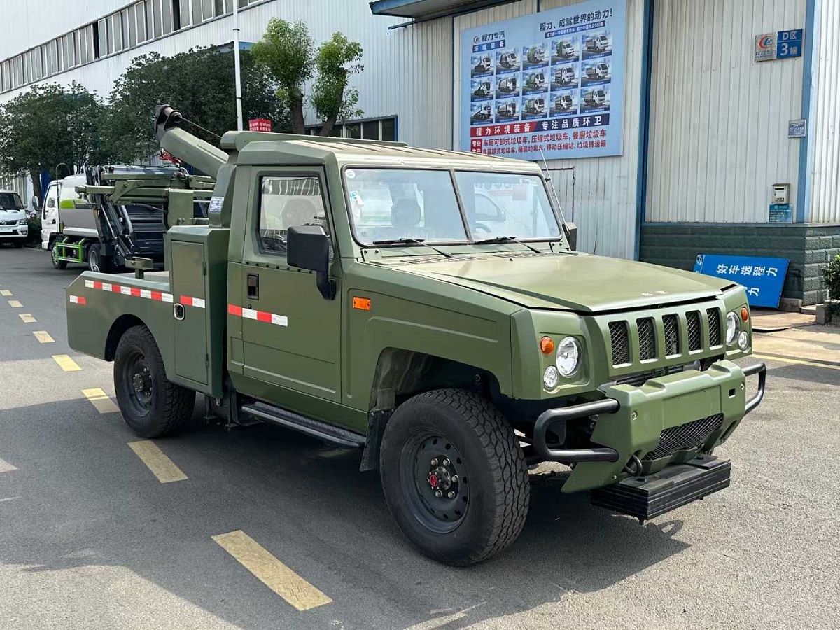The vehicle is equipped with a pair of auxiliary trolleys,which can help pull the accident vehicle onto the wrecker when the wheels of the accident vehicle cannot move.